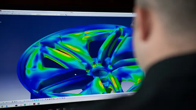 Our engineering team uses the latest CAD technology to create wheel models that meet general requirements, customer specifications and production specifications. We provide relevant data such as 3D models, technical drawings and manufacturing information. Wheel data provided by our OEM customers is carefully analysed, evaluated and discussed with the customer to develop optimised solutions that are then seamlessly integrated into the production process.