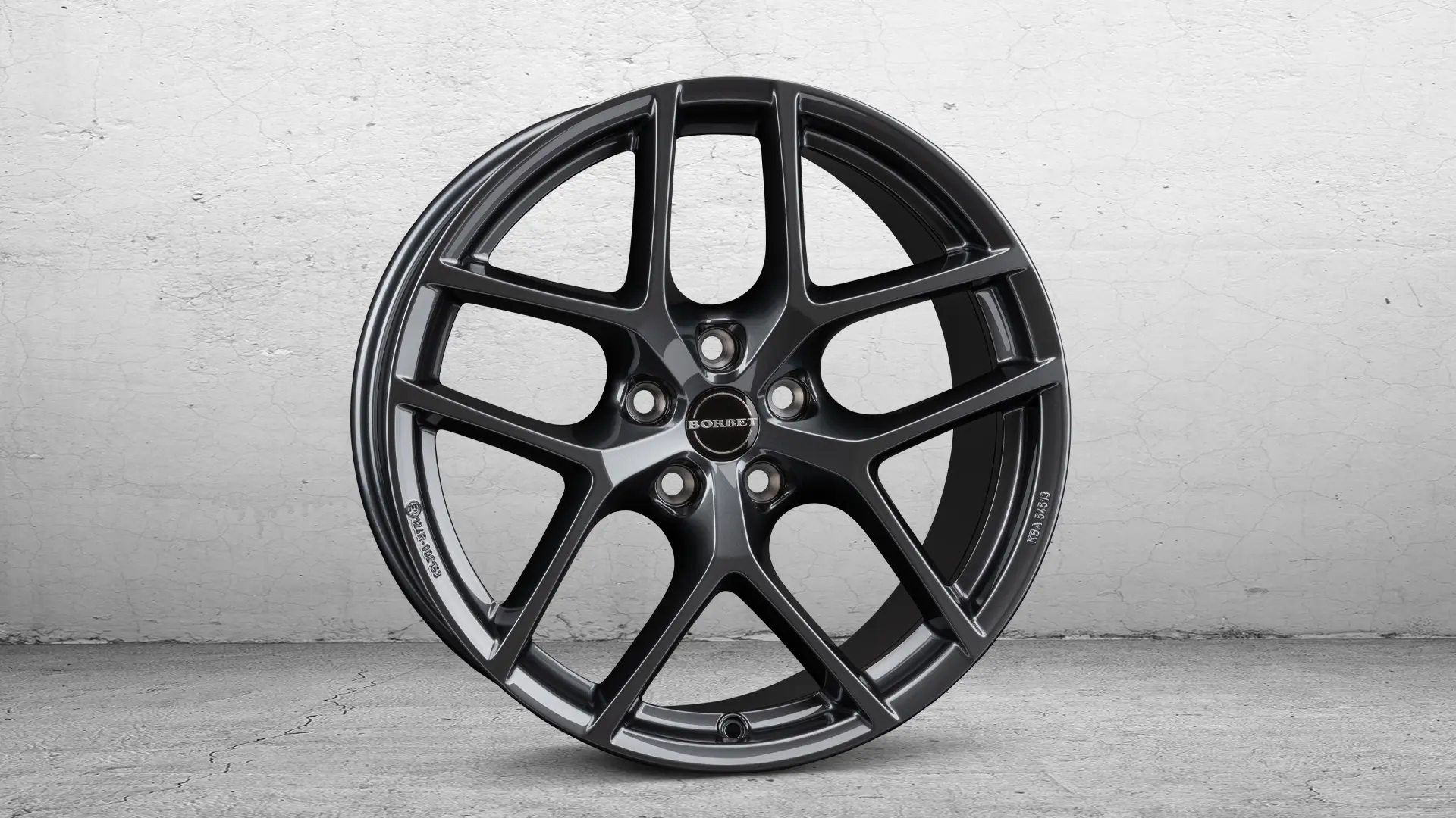 The spokes of the BORBET Y-wheel run with a slight bend from the rim to the center of the wheel, breaking up the classic star shape of conventional alloy wheels and reinterpreting it in the Y-style. The wheel hub sits low in the center and places the focus on the spokes.