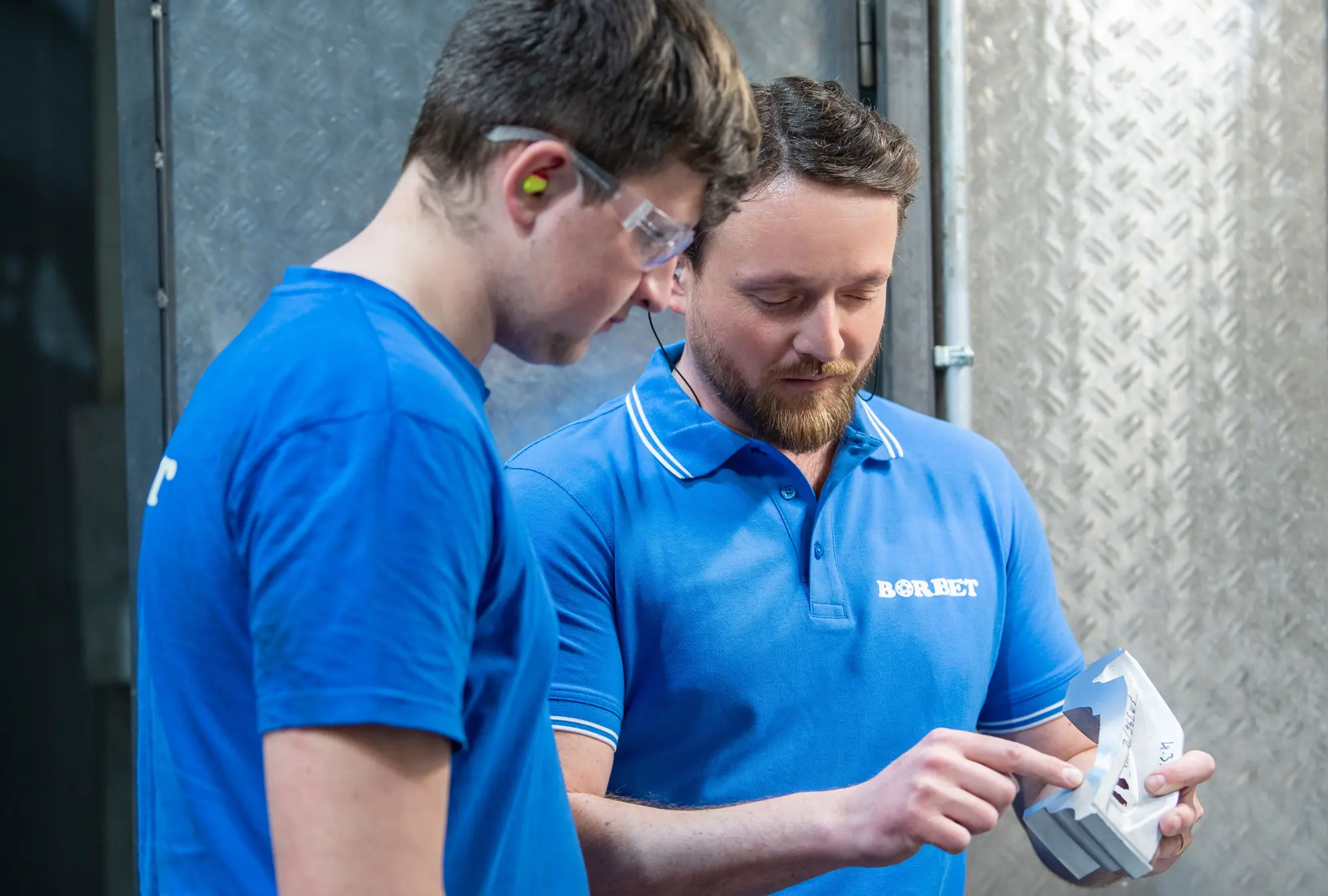 Ich begleite einen Kollegen und wir gießen Muster oder optimieren die Produktion.